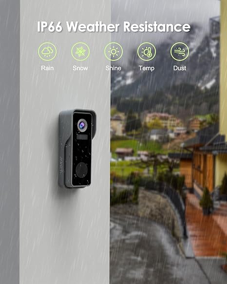 • 【2K Full HD & IR Night Vision】Doorbell camera presents you with a 2K full HD video with 145° wider view. With a starlight CMOS image sensor, this security doorbell camera will let you enjoy industry-leading video clarity and super night vision up to 33ft, taking the advanced night vision experience to you.